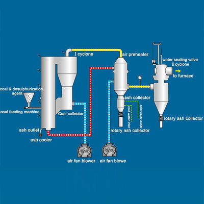 Kaynak madde, gazıfırın altından giren küçük havalı havalandırma reaksiyonunda piroliz ve gazlaştırma reaksiyonuna sahip olmak için besleme sistemi aracılığıyla gazıfır'a verilir.Üretilen enerji içinde istikrarlı reaksiyonu sürdürmeye yardımcı olabilir ve hammaddesi yakıt gazı ve yarı kokaine dönüştürebilirÜretilen yakıt gazı, bir sonraki aşamada kullanmak için siklon ayırıcı aracılığıyla toplanacaktır. The large amount of semicoke which is not fully reacted will be carried outside of the gasifier and resent to the gasifier by the return feeder for further reaction after separation through the primary cyclone separatorBirincil siklon ayırıcı tarafından ayırılmamış kül ikincil siklon ayırıcı ve poşet filtresi tarafından yakalanır ve kül boşaltma sistemi aracılığıyla boşaltılır.Gazlaştırıcının içindeki hammaddenin sağlam gazlaştırma durumu ve kalış süresi, gazlaştırıcının çapı üzerinde bilimsel bir tasarıma sahip olduğumuz için sağlanabilirBöylece hammadde, ihtiyacımız olan yakıt gazına verimli bir şekilde dönüştürülür.
